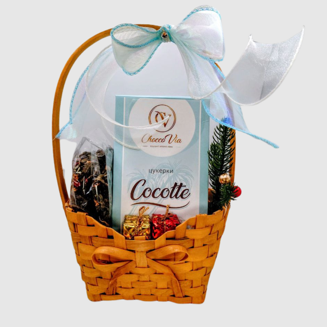 Stiilne kinkekorv, mis ühendab peene rohelise tee aroomi ja kookosekommi magususe. Thurson Strawberry Fantasy tee pakub õrna puuviljast maitset maasika ja mango nootidega ning lille kroonlehtedega, samas kui Cocotte šokolaadikommid tootjalt Ametist Plus rõõmustavad kreemja kookosetäidise ja topeltglasuuriga – valge ja tumeda šokolaadiga. Täiuslik kingitus või hubane teehetk.