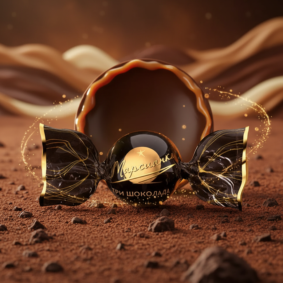Experience a symphony of flavors with "Marsyanka Three Chocolates" Candies from Moscow, where three delightful chocolate layers come together in perfect harmony: